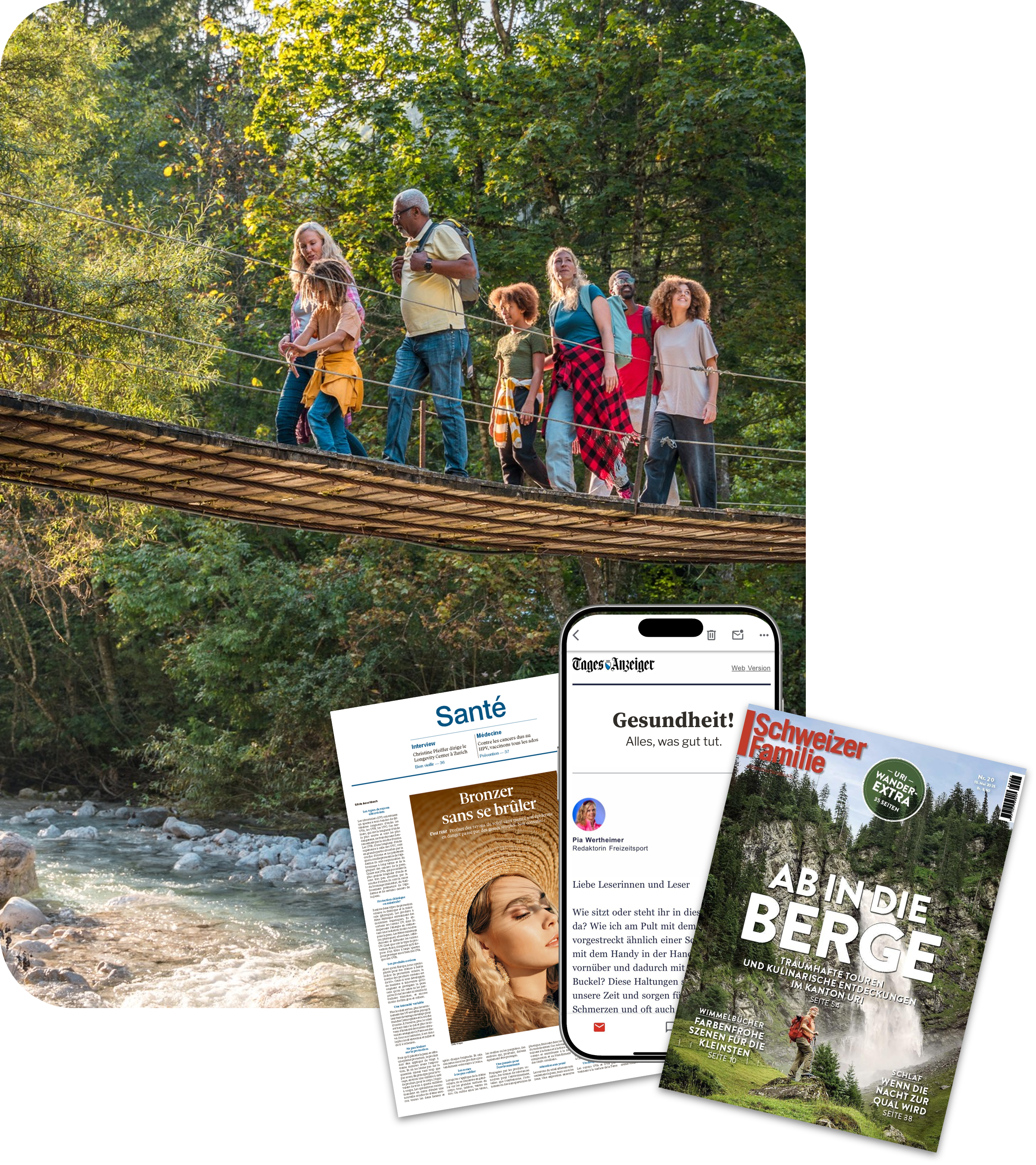 Mit redaktionellen Schwerpunkten zur Wander- und Velosaison, zur Badi-Figur sowie zu Heuschnupfen und Allergien bieten wir ein glaubwürdiges Umfeld für Marken im Bereich Gesundheit, Sport und Lifestyle. Ergänzend sorgen thematische Beilagen, digitale Channels und Newsletter für eine gezielte Verlängerung in Print und digital.